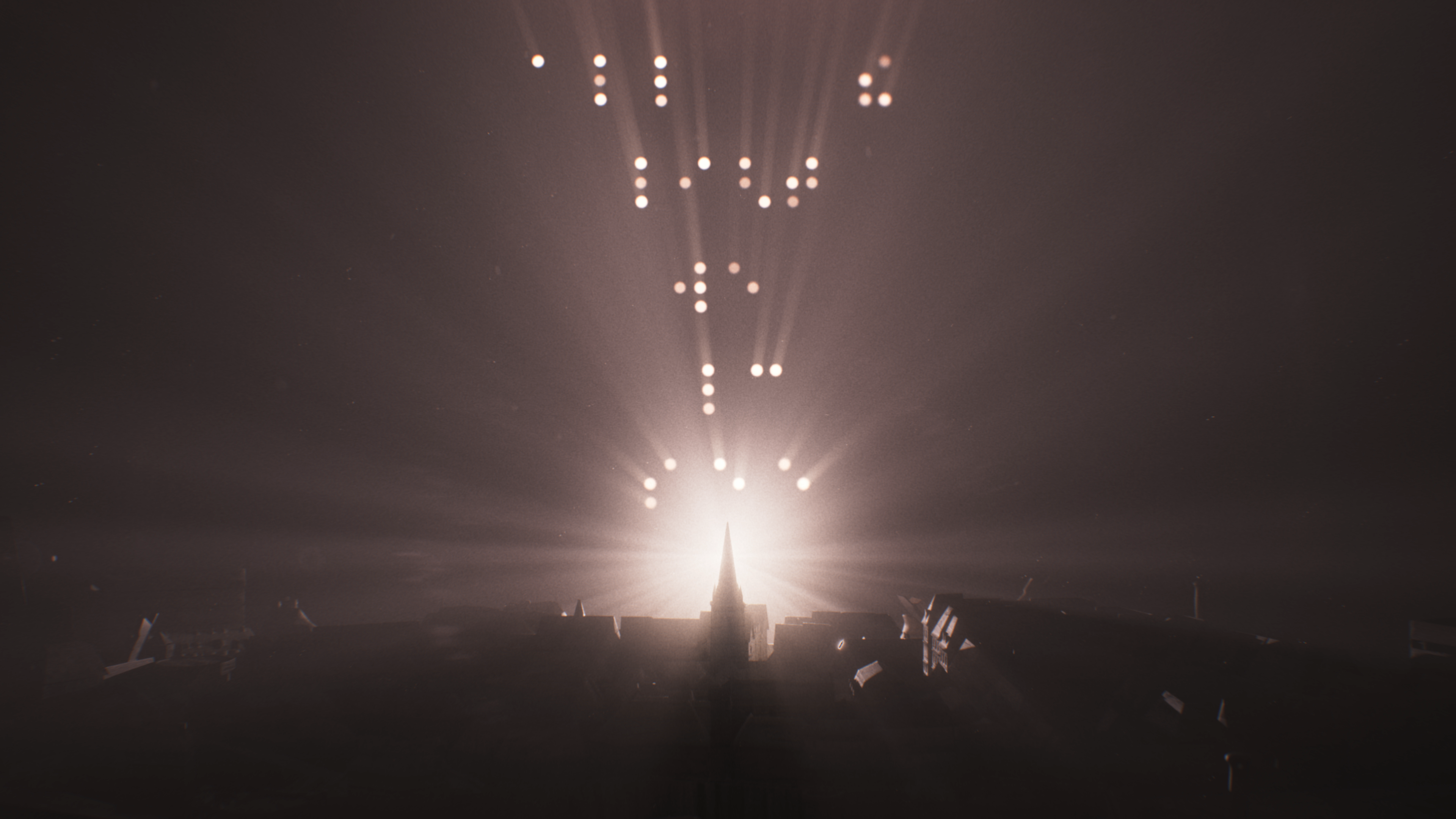 The main ingredients of the sequence were the model city and the movement of light, so we had to be very intentional about how we used them. The idea was to gradually reveal the city through the use of slits of light moving over the contours of the buildings. As we progress and get wider on our view, we also introduce some ambient light to bring more of the city into view.